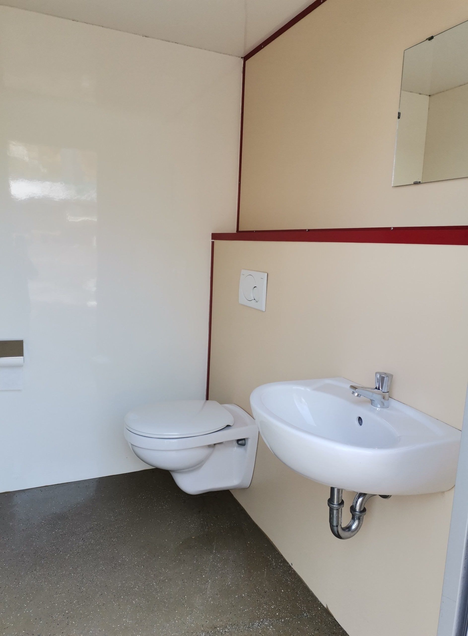 Der Toilettenwagen ist zusätzlich noch mit jeweils einer Heizung, Led-Beleuchtung (Innen/Außen), WC-Bürsten und Verbrauchsmaterial (Toilettenpapier, Einmalhandtücher, Flüssigseife) ausgestattet.